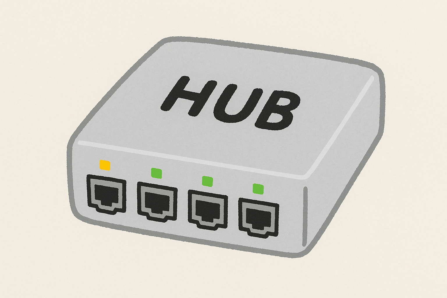 HUBはもともと車輪の中心にある軸を意味していましたが、そこから派生して集約点を意味する用語です。