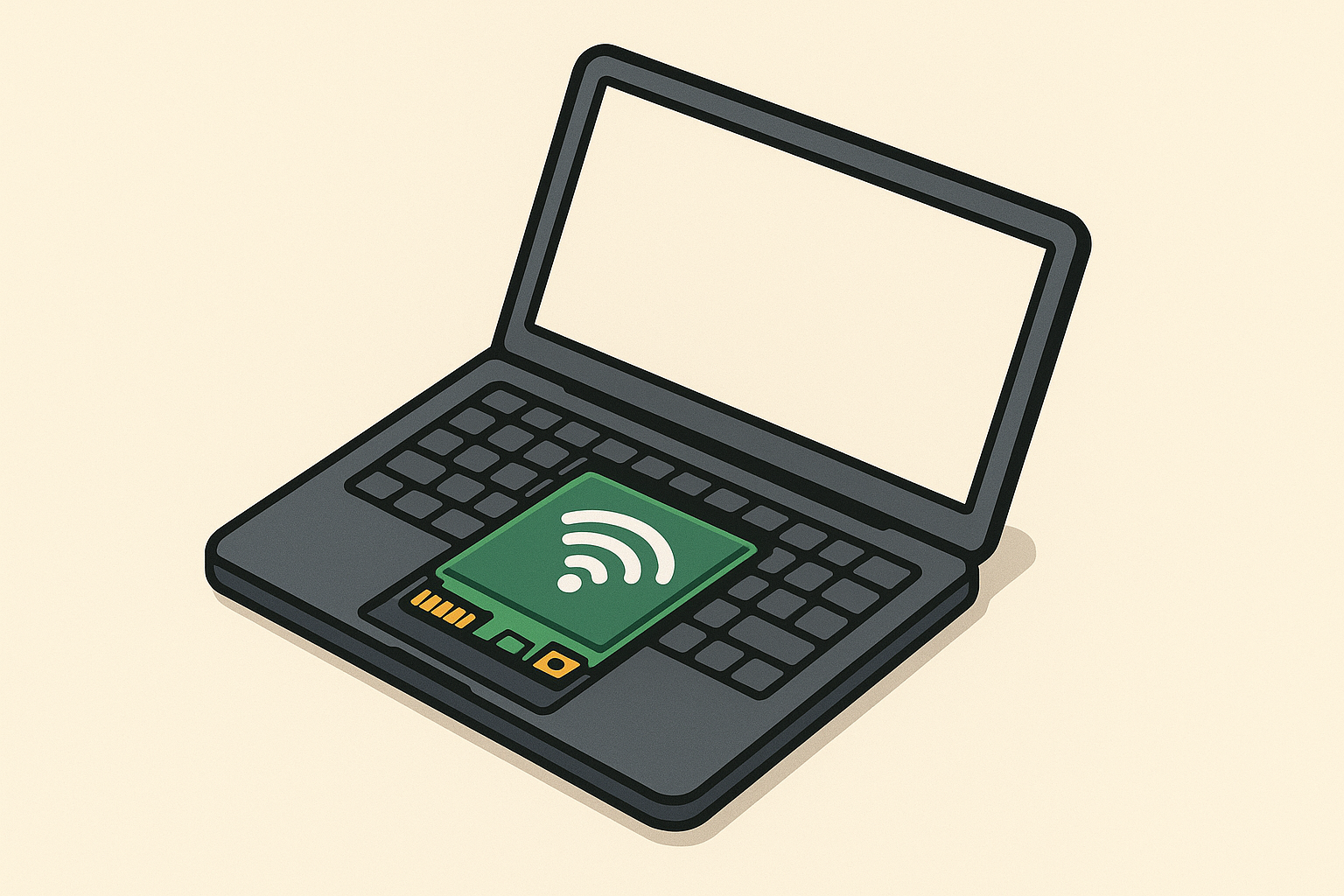 無線用のNICは通常ノートパソコン内蔵のカードは中に埋まっていて見えませんが、概ね画像のようなカードが入っています。