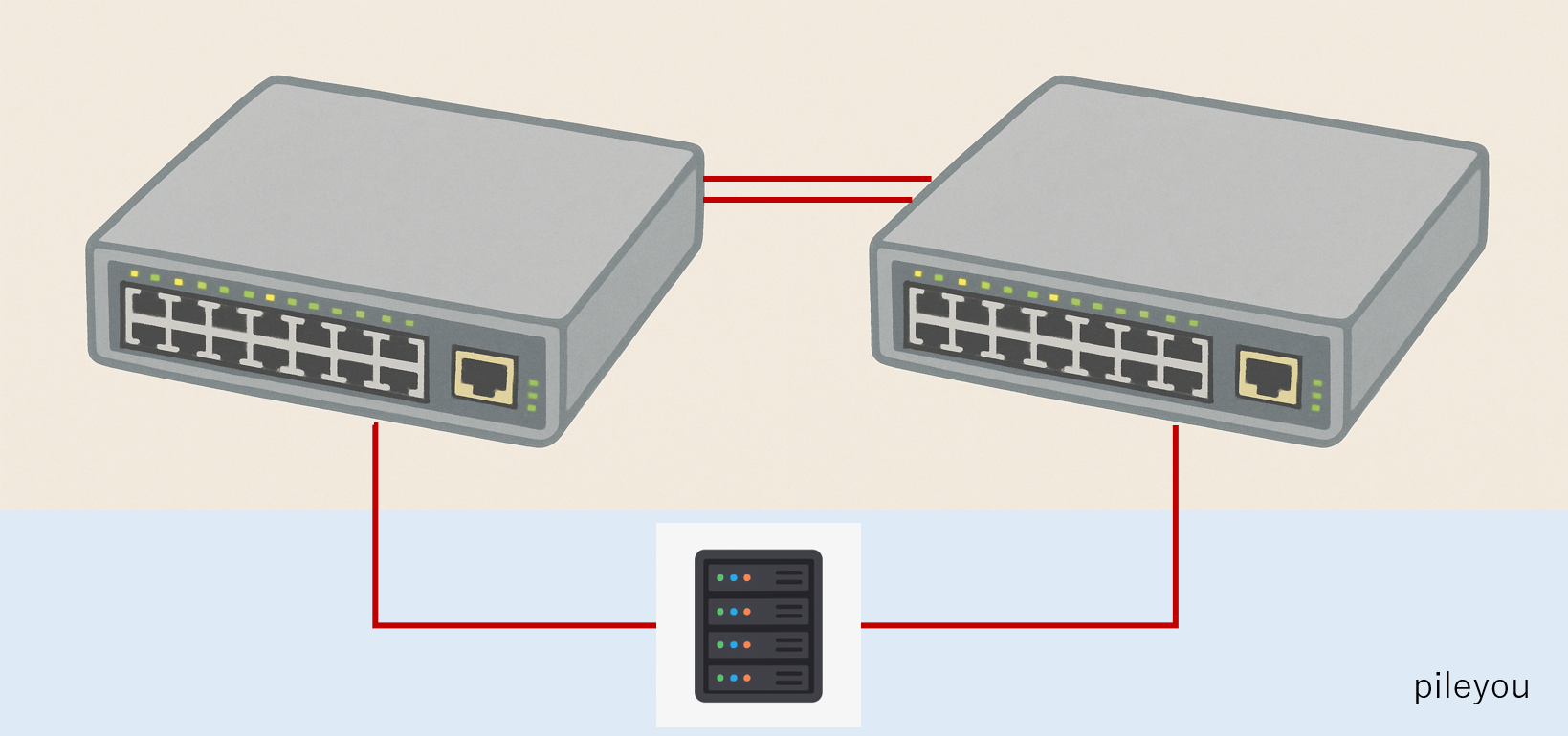 L2、L3スイッチでは、筐体がダウンする障害に備え、装置自体を冗長構成にするスタック機能があります。