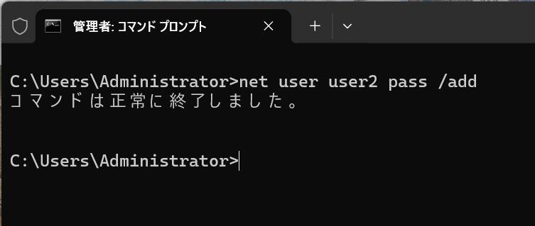 net user user2 pass /add
