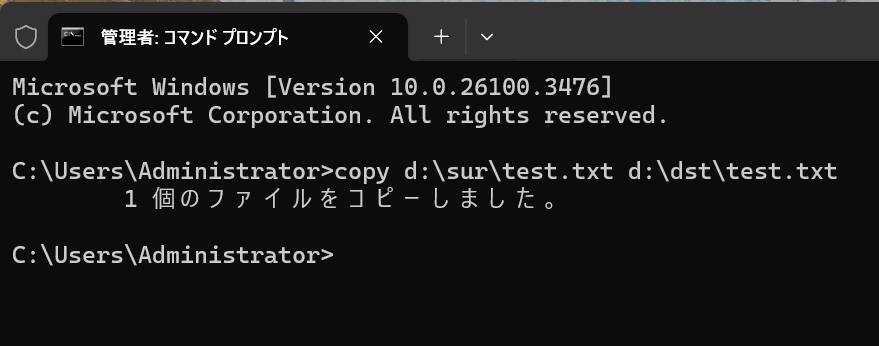 copy d:\sur\test.txt d:\dst\test.txt