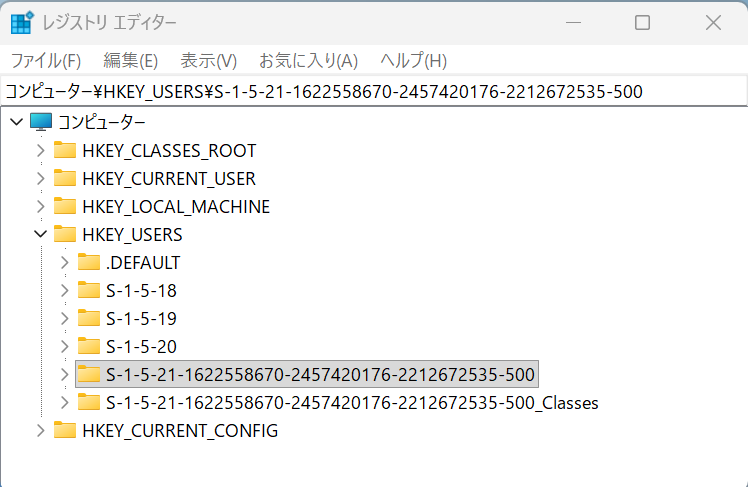特定のユーザーは「S-1-5-21-」から始まるサブキーを利用します。