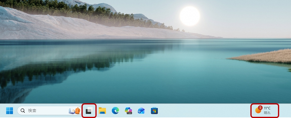 ウィジェットをOFFにすることで、タスクバーに表示されている「お天気」を消すことができます。